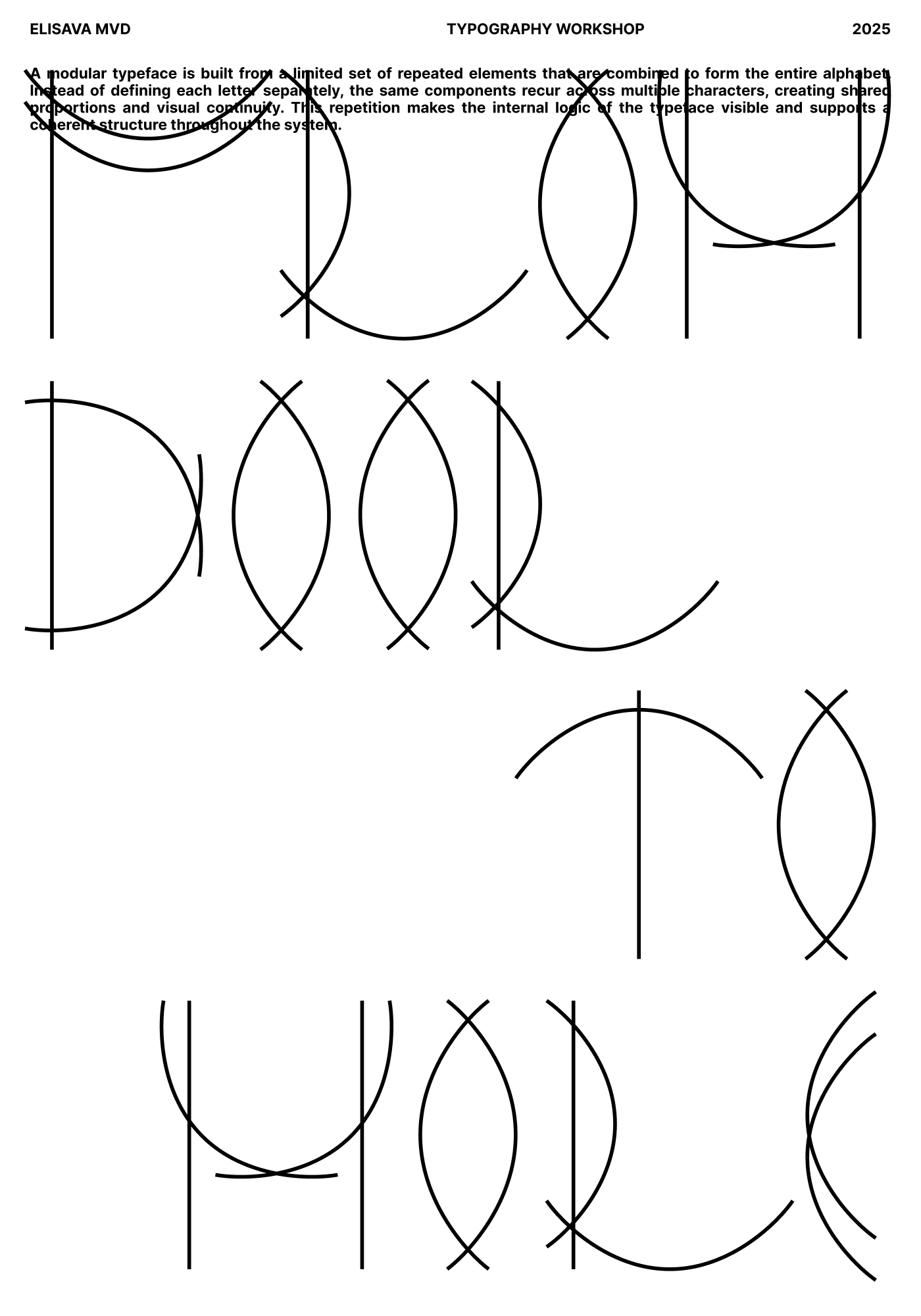 I really enjoyed searching for unusual solutions for certain letters. Some characters were easy to build from the elements, but others were harder to adapt to the system. Figuring out how to solve those tricky letters was the most exciting part for me. I love that moment when you suddenly find a solution that feels unexpected but still logical.