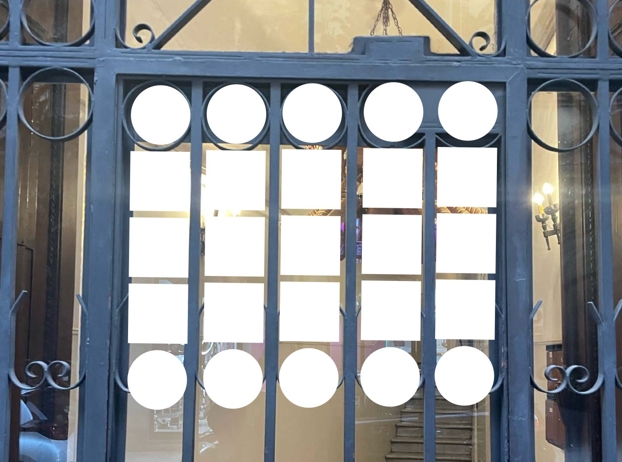 The letterforms were constructed within the grid system of the window grilles themselves. Later, the rounded and straight shapes were morphed to create a seamless flow, resulting in a curled or flourished effect at the top and bottom of the characters.